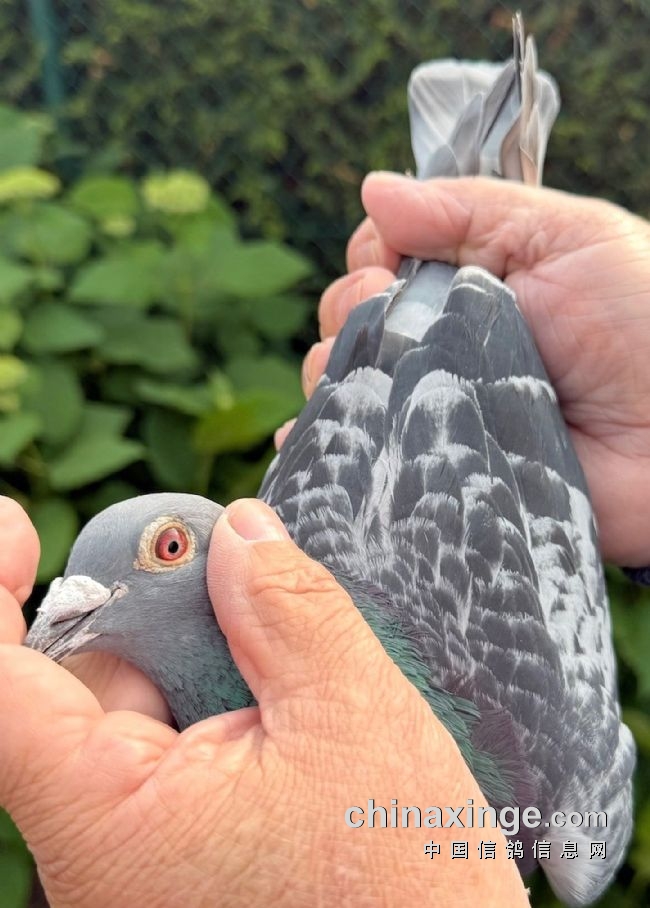 成鸽组全国冠军是杨&汤姆.伊文(Iwens Jan & Tom)组合名下战将,环号BE24-6011123,这羽灰白条名叫“铁女郎”,来自“马克西姆”ד三个0”配对。