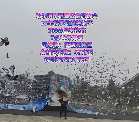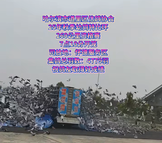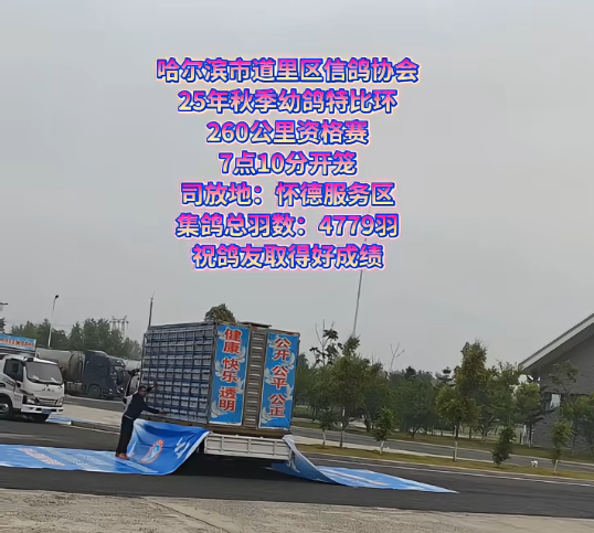 8月30日早7点10分,哈尔滨市道里区信鸽协会2025年秋季260公里特比环资格赛开启。作为本年度秋赛的首场比拼,鸽友们热情似火,共有4779羽赛鸽参与赛事,司放地怀德服务区,参考分速251公里。