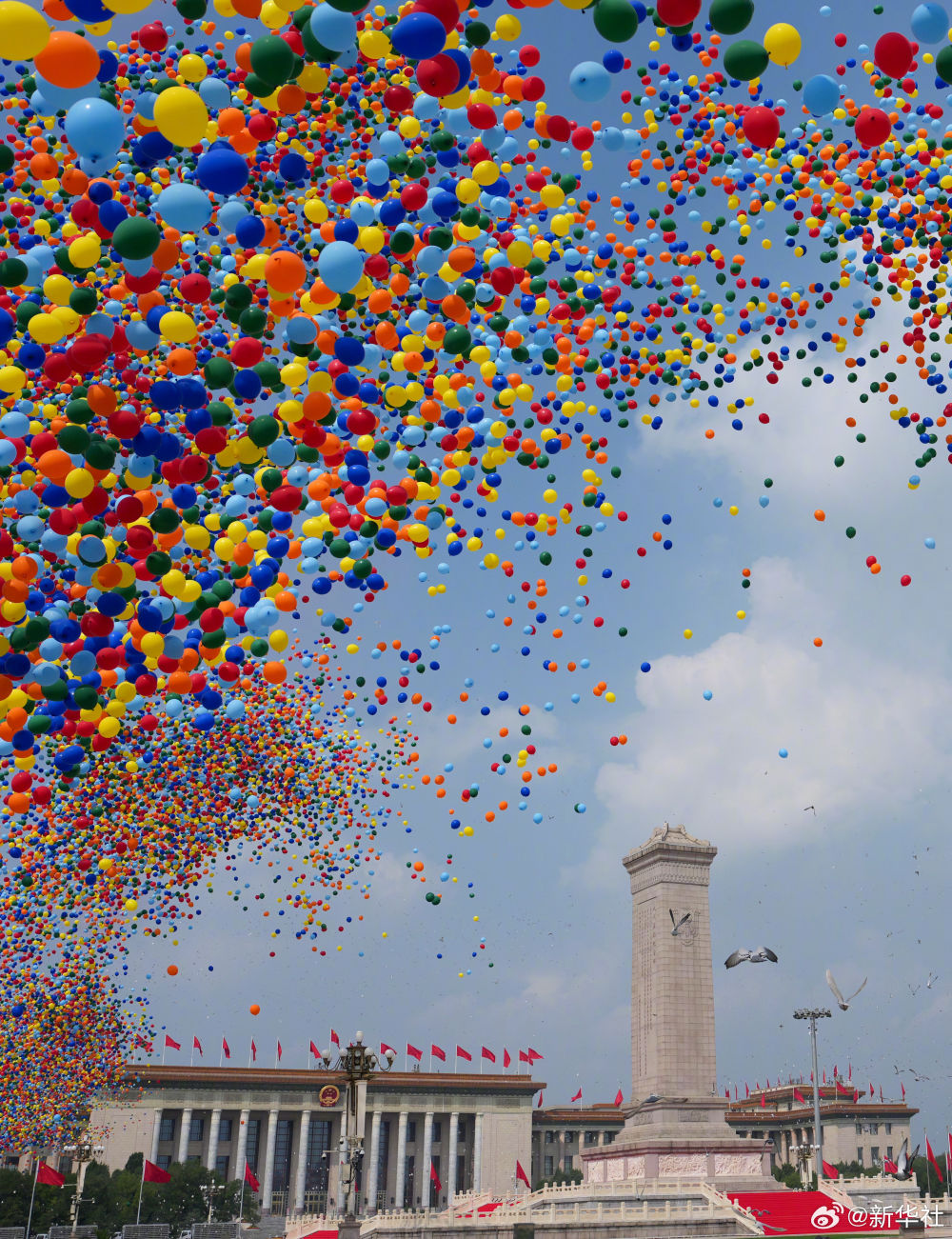 山河永念,英雄不朽,浩气长存!随着8万羽和平鸽和8万只彩色气球飞向天空,纪念大会在《歌唱祖国》的歌声中圆满结束。