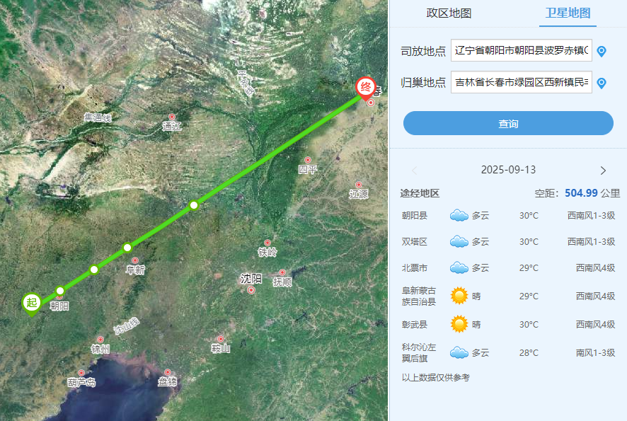 司放地朝阳县早晨有大雾,对赛程开始的定向造成一定的挑战。沿途天气多云有晴,最高温30℃,西南风4级,赛鸽全程顺风飞行。点击查看比赛直播>>