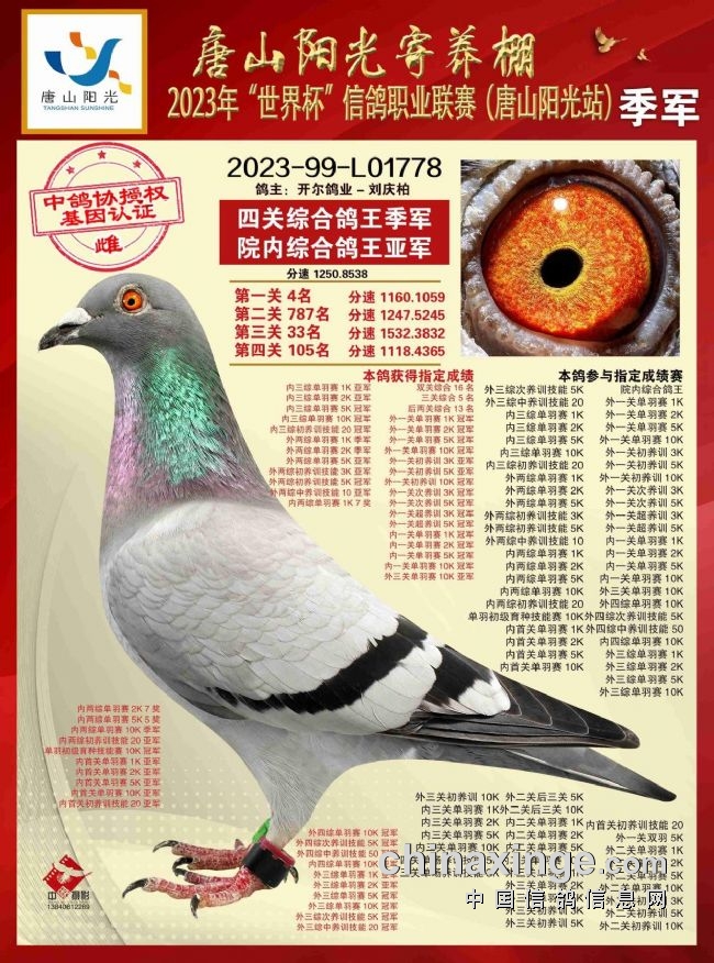“奥林匹克伊万卡”家族引入国内后,冠军血脉的力量依然震撼:孙代在神州辉煌、山西神齐等公棚屡获高位。“奥林匹克伊万卡”的一羽直女更赢得2023年唐山阳光四关综合鸽王季军殊荣!