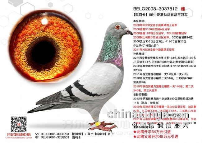 这份卓越源自其纯正的冠军血统:“奥林匹克伊万卡”是盖比传奇名鸽“闪电号”4代×4代的双重近亲回血。