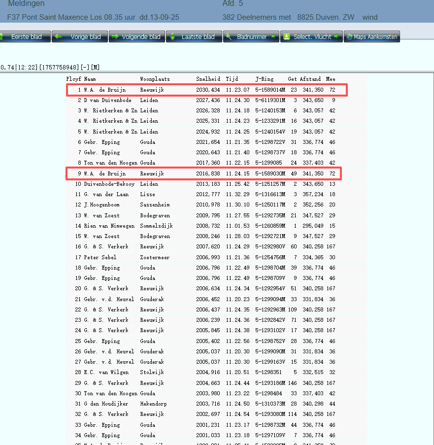 9名刚于上周斩获图瑞474公里、9881羽赛事的11名。