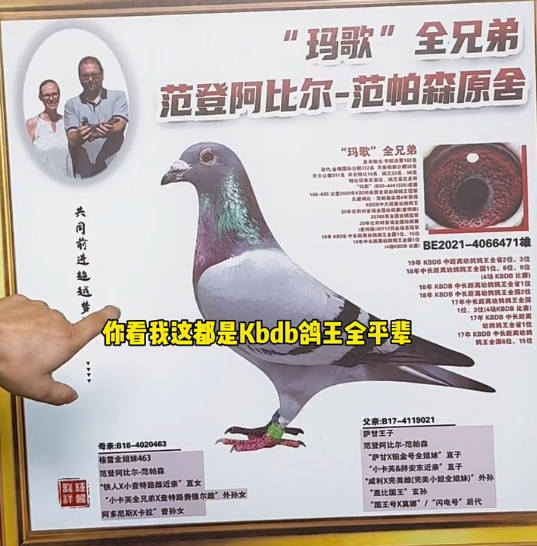 当时开尔去欧洲引种也接触到了海伦戈特。他买完奶酪的时候,老爷子说,海伦戈特值得拥有。当时邢总就定了它5年,不过他拿回国内来的时候,大家不怎么认,慢慢这路血就散出去了。现在这鸽子越来越厉害。不怕不知道,谁拥有谁受益。这路鸽子现在慢慢火起来了,我敢打赌,它3年5年以后更火爆,因为它有爆发性,提前拥有的人都得利了。有些东西不是钱的事儿,是可遇不可求。遇上一个好鸽子,买不到就一宿一宿睡不着觉。