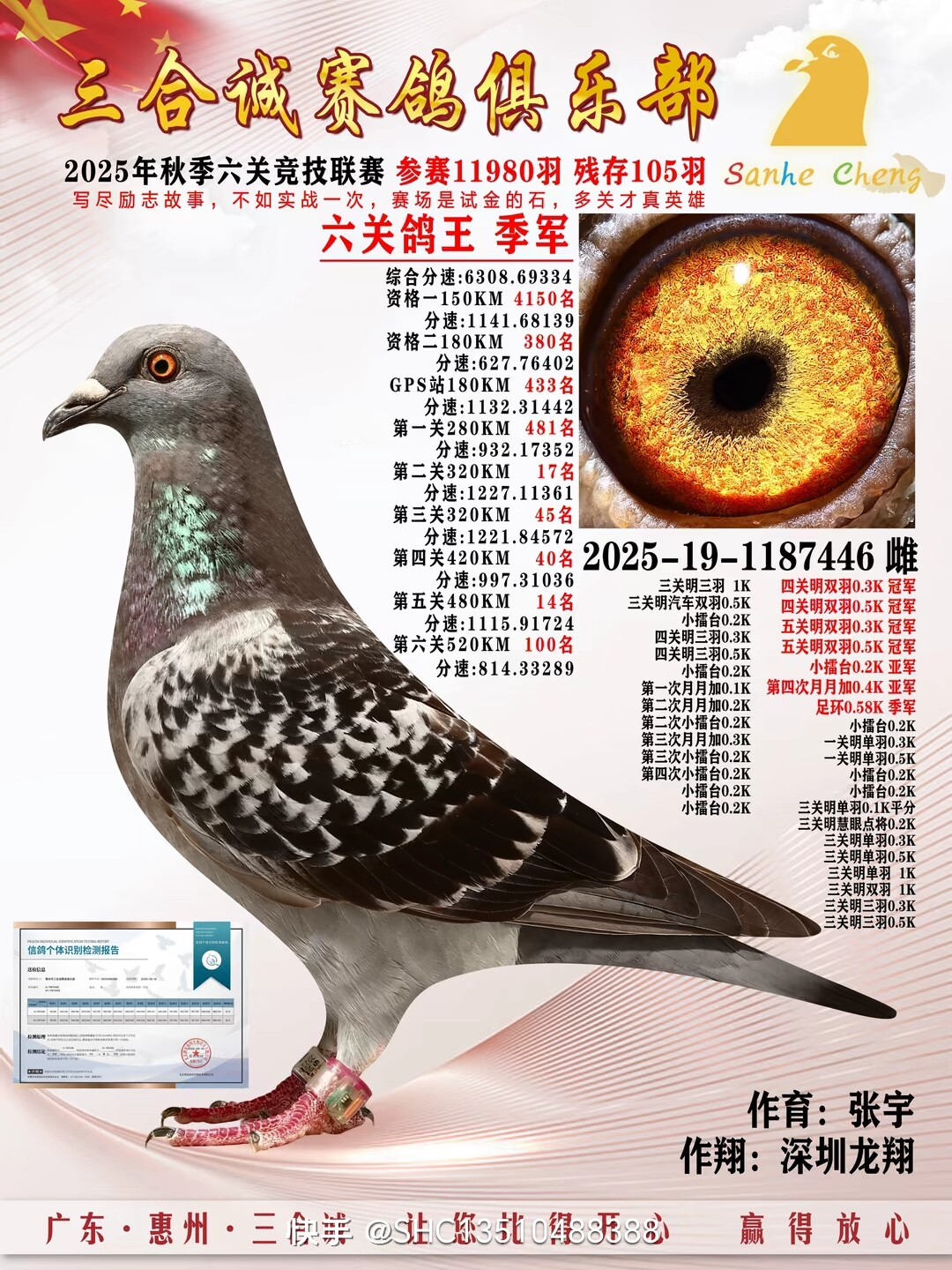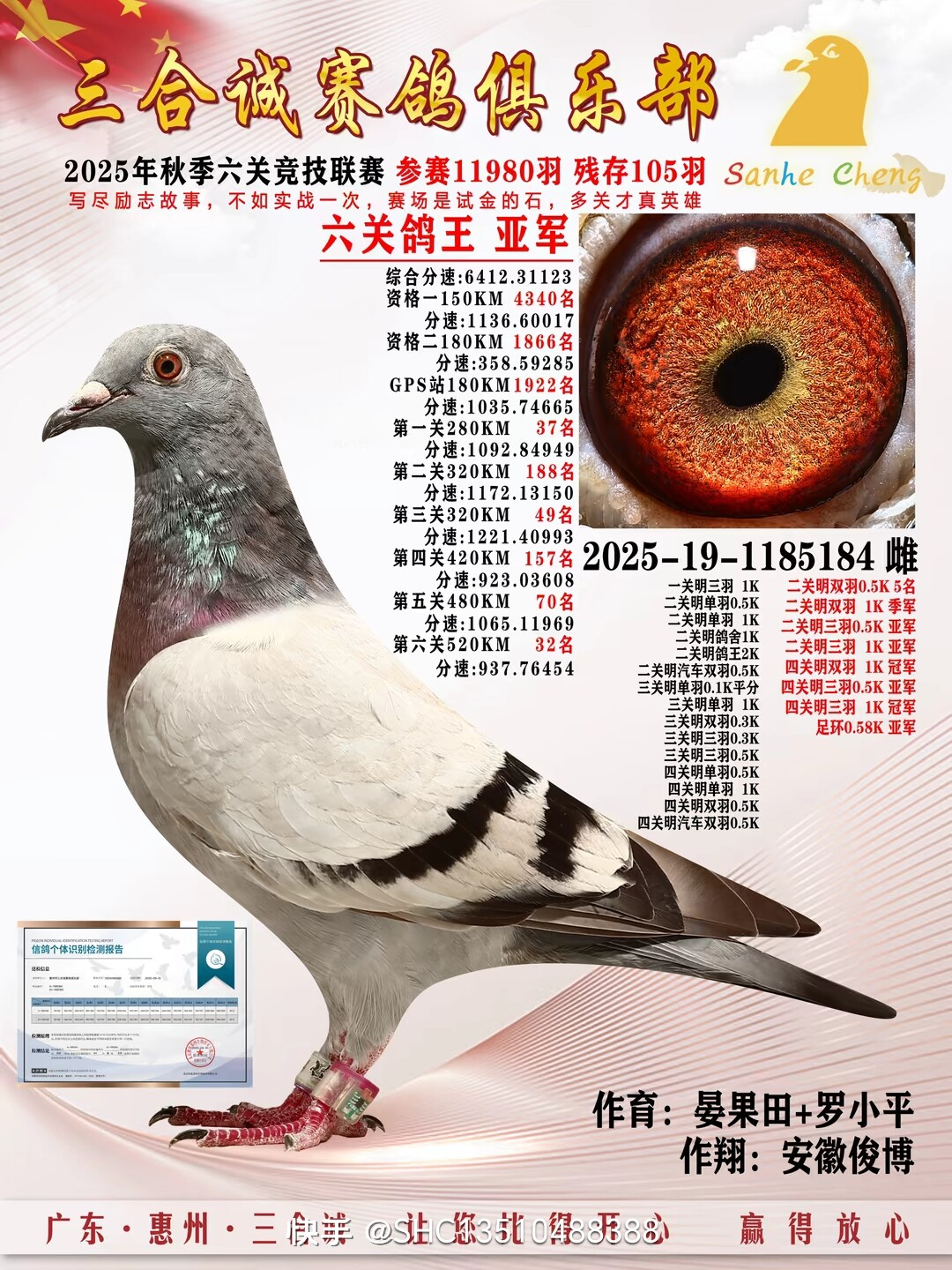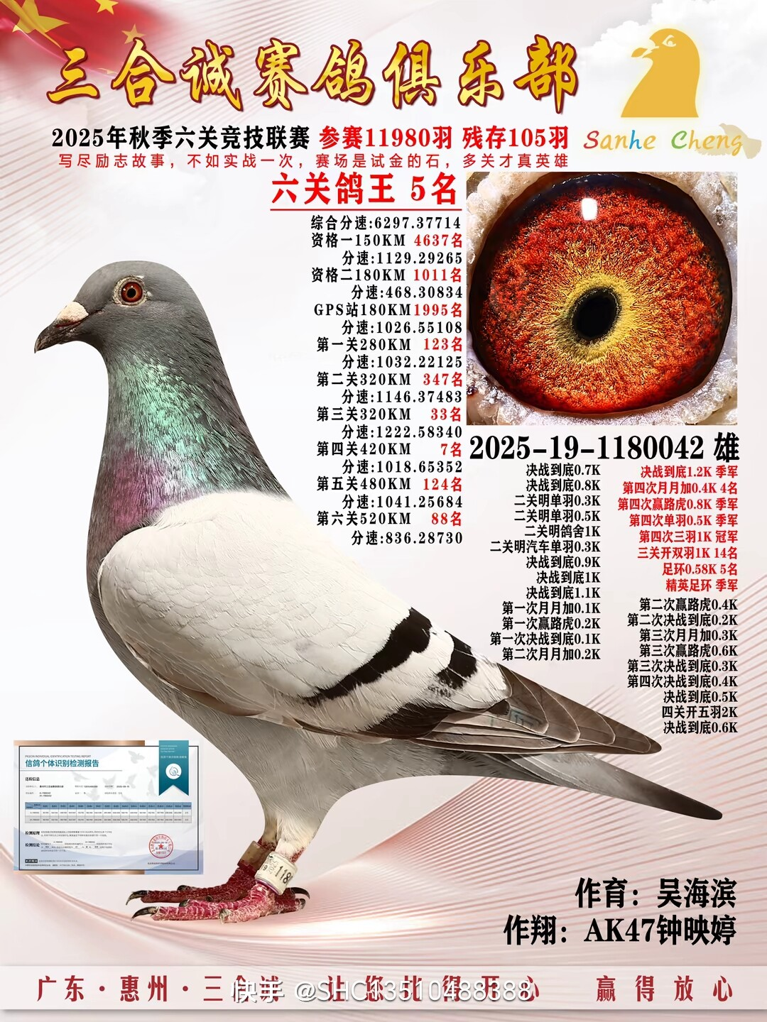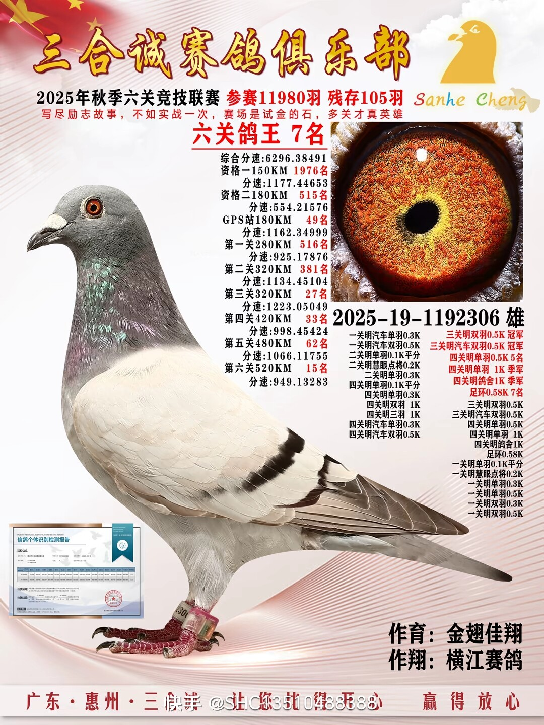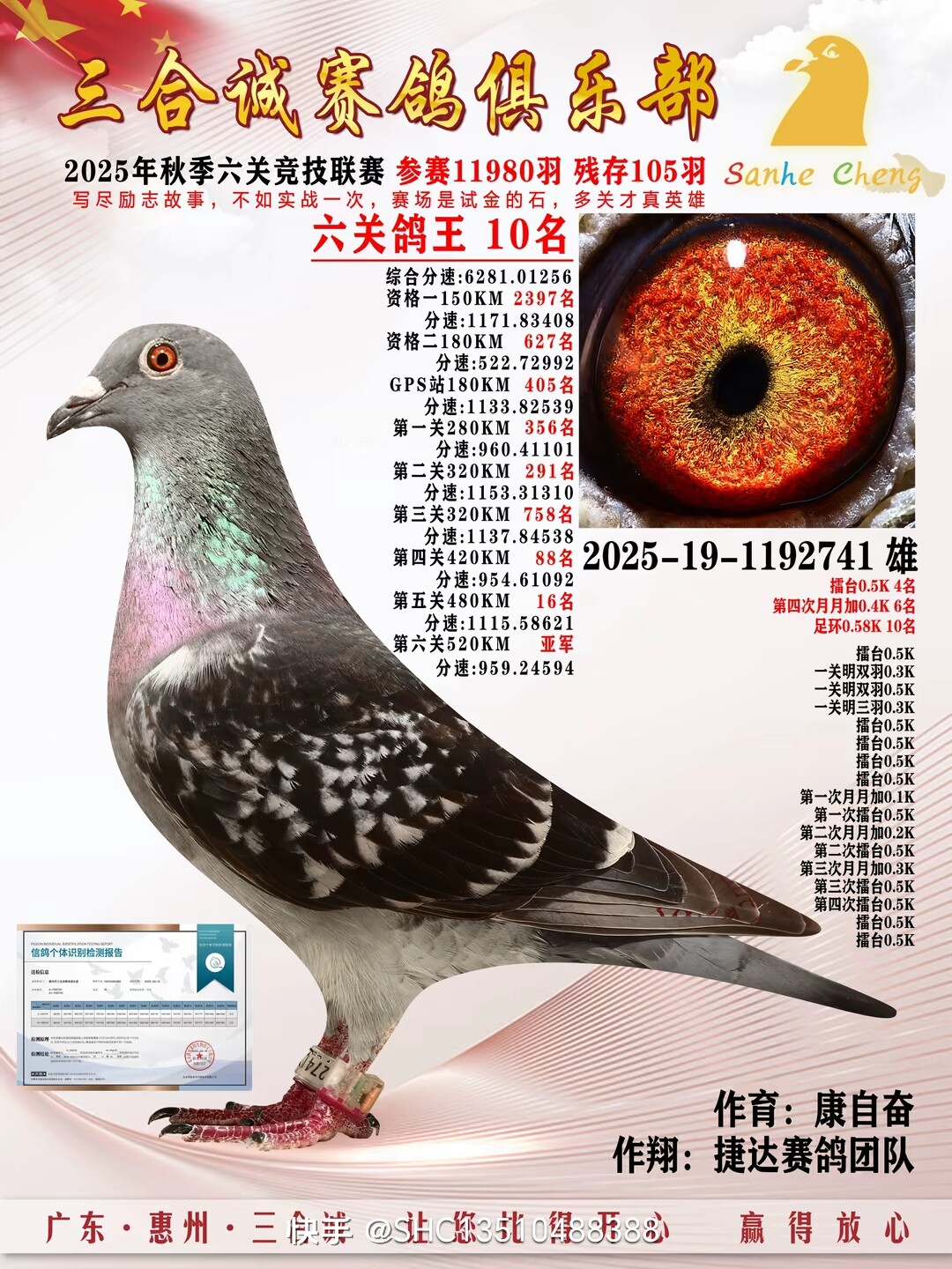 比赛时间从8月1日开始,至9月11日结束,前后历经40余天,关关高分数限制,严格淘汰,两关大暴雨,多关高温闷热天气,暴雨归巢、打伞接鸽、风雨无阻开笼等场景刷屏鸽界,最终万羽大赛残存105羽六关鸽王。下面一起欣赏含金量极高的六关综合鸽王前十风采: