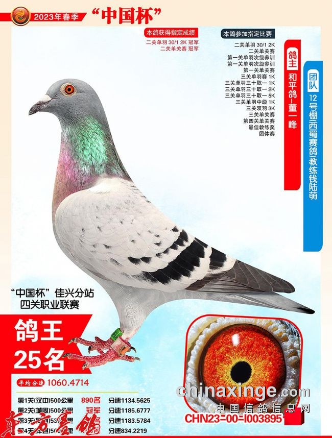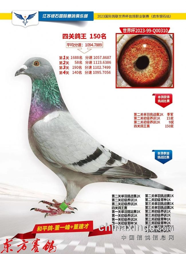 江苏德春赛鸽俱乐部五关鸽王总排:冠军、11、14、22、39、106、153、229、299名。五关鸽王院内:冠军、10、13、19、35、90、121、170名。