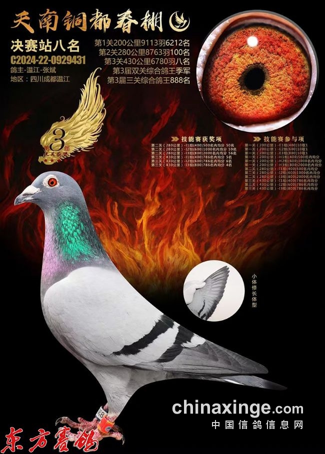 中天赛鸽公棚500KM决赛80名、三关鸽王8名、四关鸽王亚军、幼鸽赛23名。
