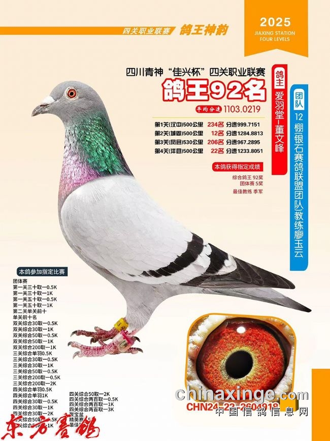 四川佳兴寄养棚四关综合鸽王:25、249名。
