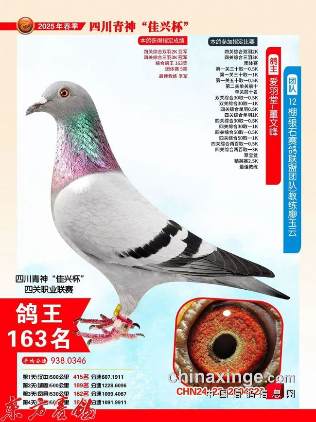 四川佳兴俱乐部,四关综合鸽王:35名、92名、163名、团体赛5奖