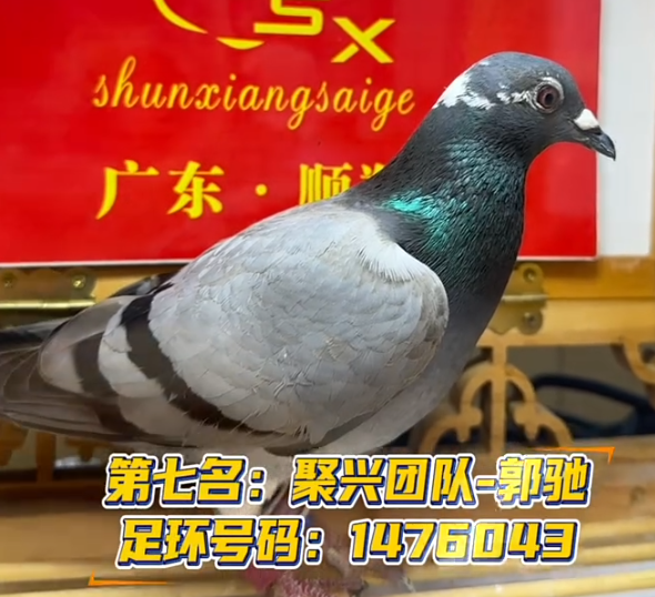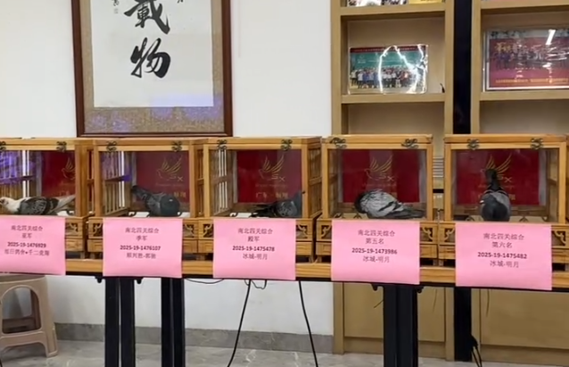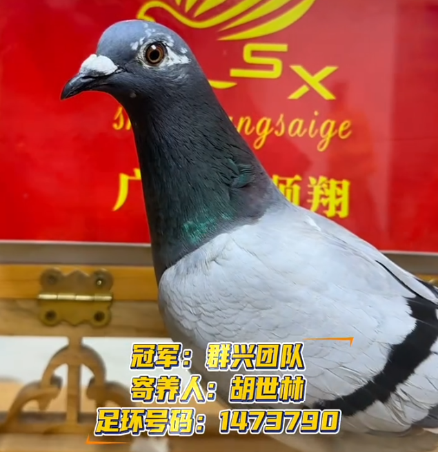 10月15日早六点半,最终决赛关开笼,参考空距394公里。本场集鸽169羽,下午一点半左右,赛鸽们打钟归巢。顺兴胜-郭驰的2025-19-1476107团,13:38:05打钟,飞行分速960.0344米/分,获得决赛冠军。群兴团队-胡世林的2025-19-1473790团获得决赛亚军、四关综合冠军。黄光强+黄子雯的2025-19-1474337团获得季军,飞行分速956.5902米/分,四关综合排名15名。