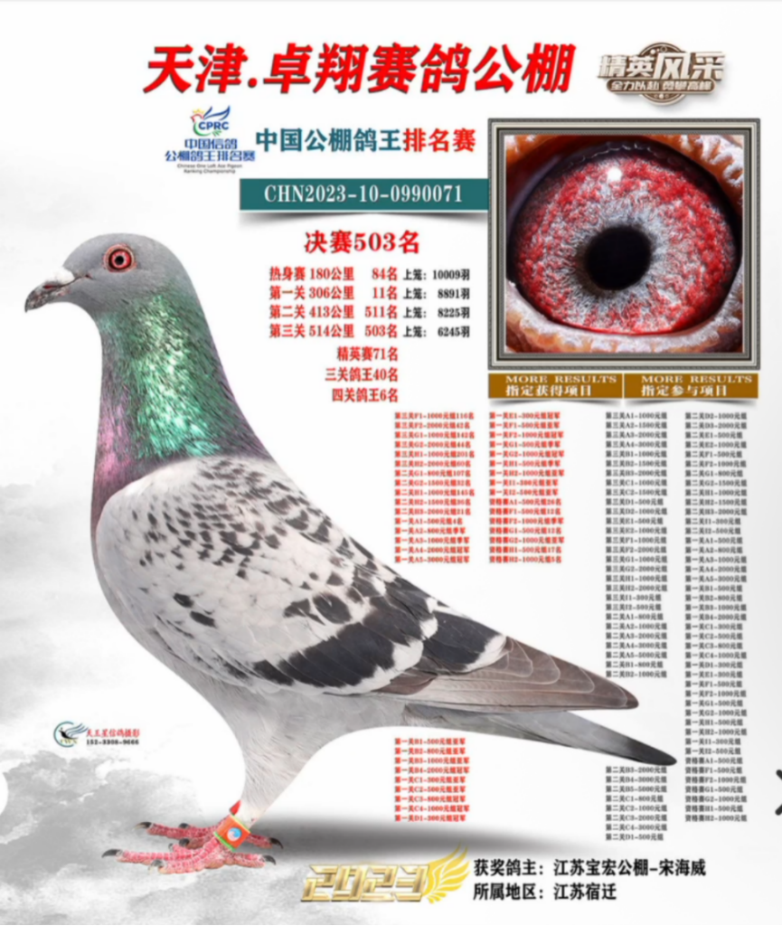 917父亲是兰吉直孙与兰吉外孙女的结合。兰吉,杰基3号直子,自身斩获7次冠军、5次亚军、6次季军,其家族在国内赛场发挥极佳,开尔春棚双关鸽王亚军、开尔秋棚预赛冠军,开尔春棚资格赛季军,首关亚军,源博三关鸽王亚军、泰鑫四关鸽王季军、冠宇公棚决赛冠军、宝宏公棚预赛冠军、卓翔四关鸽王6名、金翔预赛季军、津福公棚预赛季军等!吉尔特海伦堪称提速利器。