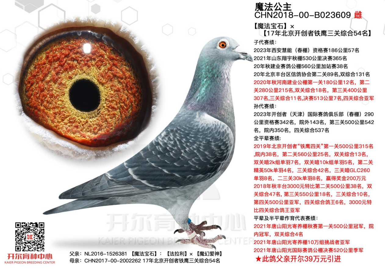 23名父亲699本身是博翔寄养棚第三关季军,是鸽友用开尔种鸽直接作育使翔,父亲源自掠金号×魔法公主。掠金号是杨欧瓦克第一种雄掠夺者与奶酪240的结合,魔法公主源自经典配对魔法宝石×金奖玉女,作育子代获20年建业公棚四关综合亚军。母亲是盖比五虎将之一的巨人的双重回血,父亲是巨人直子暗灰巨人与安尼克直女的结合,母亲是巨人直子费舍尔,波尔多全国冠军与鲁迪直子帕布罗的女儿的结合。