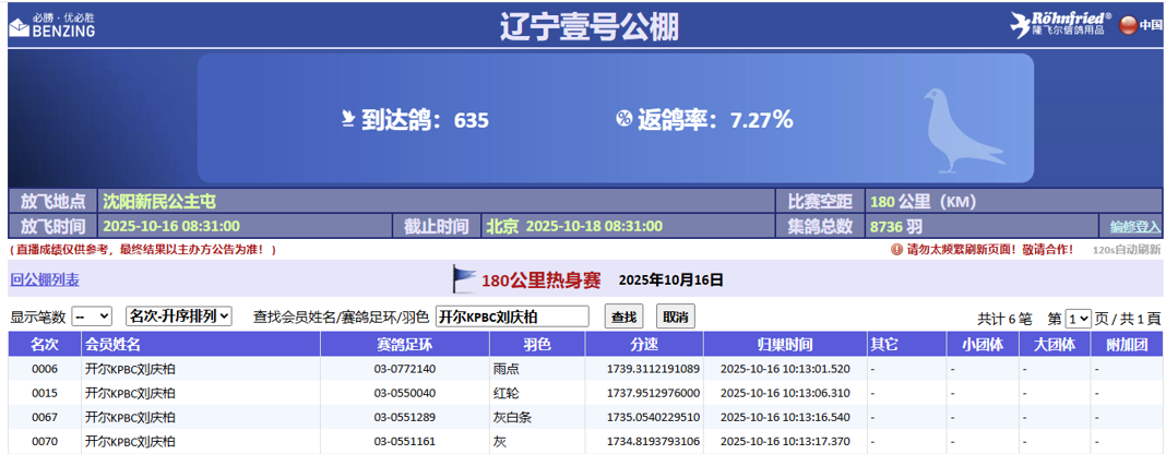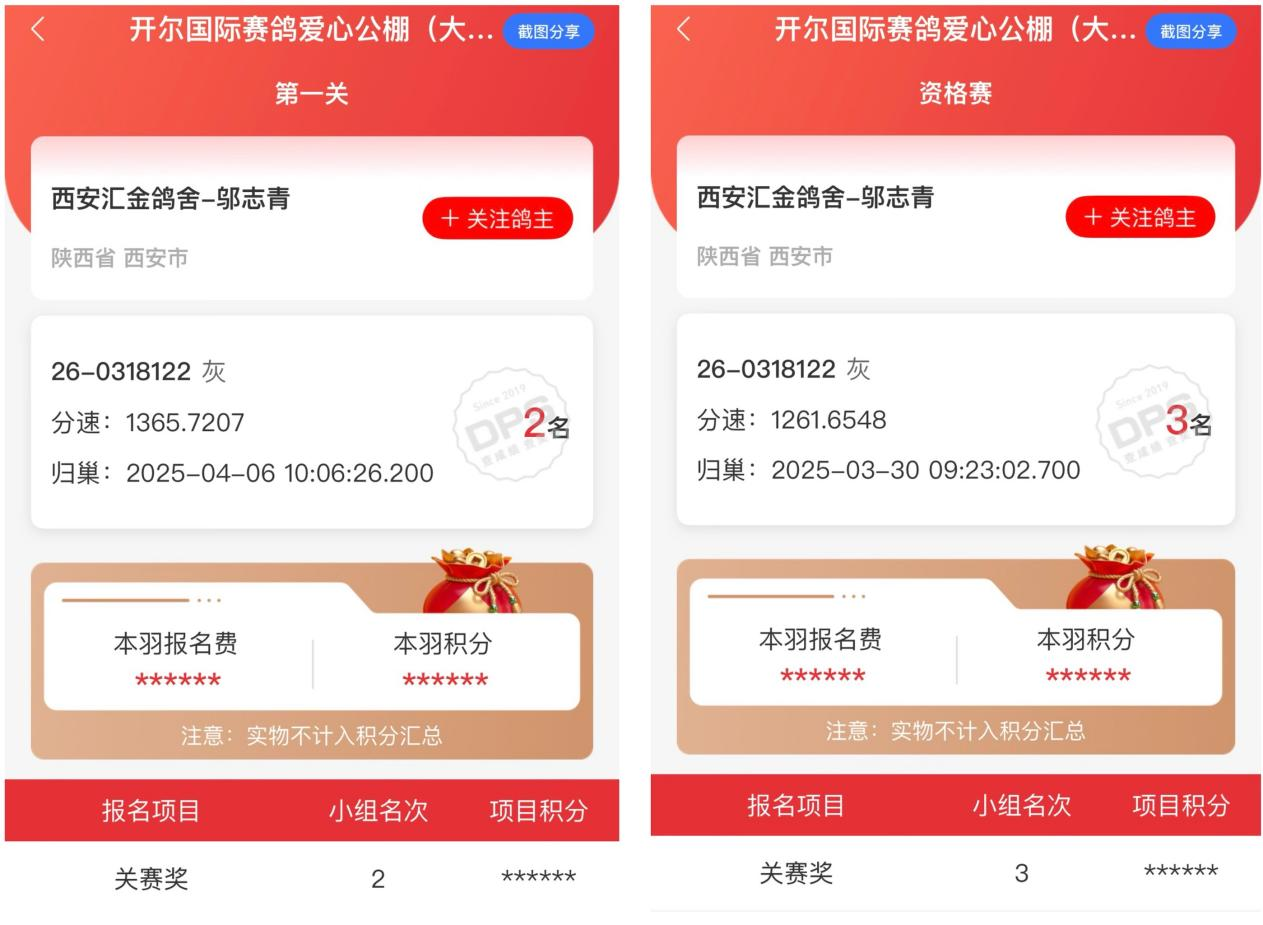本次比赛,开尔战队前十进1,前百进4,期待开尔军团及鸽友朋友们,在后续比赛中振翅翱翔,再创辉煌!