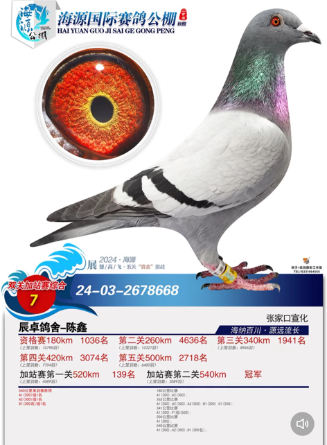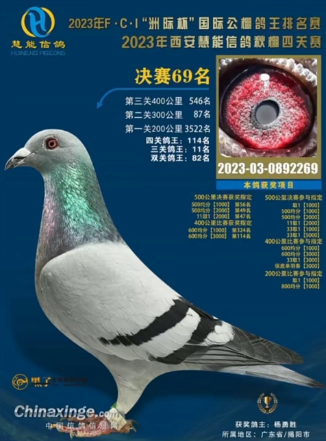 67名亦出自海伦兰吉多重近亲回血作育,兰吉一脉国内赛场战绩赫赫,开尔春棚双关鸽王亚军、开尔秋棚预赛冠军,源博三关鸽王亚军、泰鑫四关鸽王季军、冠宇公棚决赛冠军、宝宏公棚预赛冠军、卓翔四关鸽王6名、金翔预赛季军、津福公棚预赛季军等!