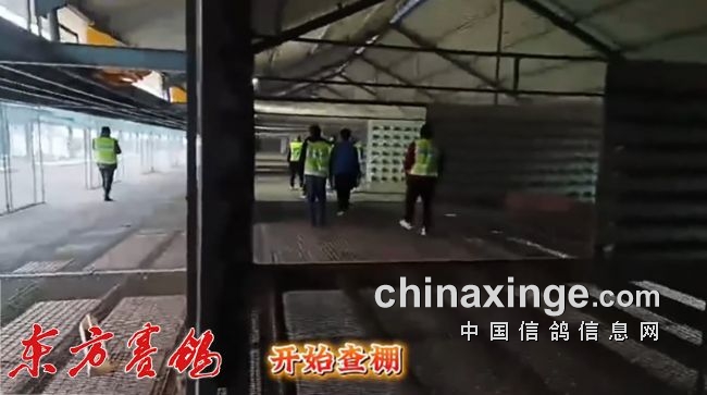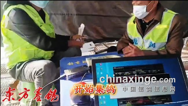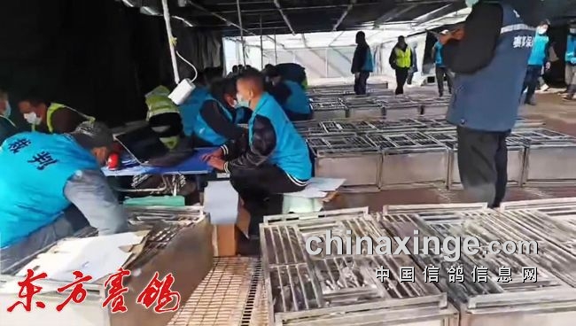 集鸽结束出发司放地的裁判员和鸽友代表在公棚内留。