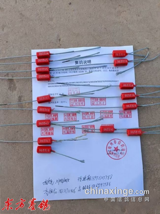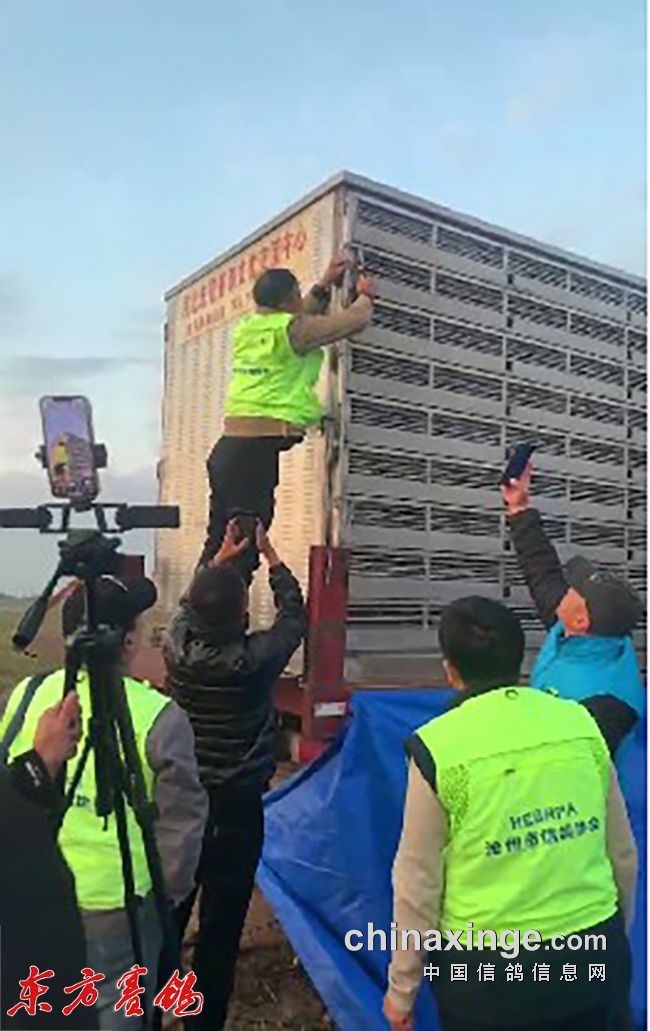 集鸽:20日下午集鸽,由沧州市信鸽协会裁判组执裁,国家级裁判胡文忠任裁判长,鸽友代表参与监督。裁判组用四台扫描仪和四台电脑对赛鸽逐羽扫描、核对足环、上笼,有条不紊地顺利完成集鸽。当晚,一万余赛鸽分乘四辆司放车在夜色下挥师西南奔赴司放地——河北衡水市武邑县。