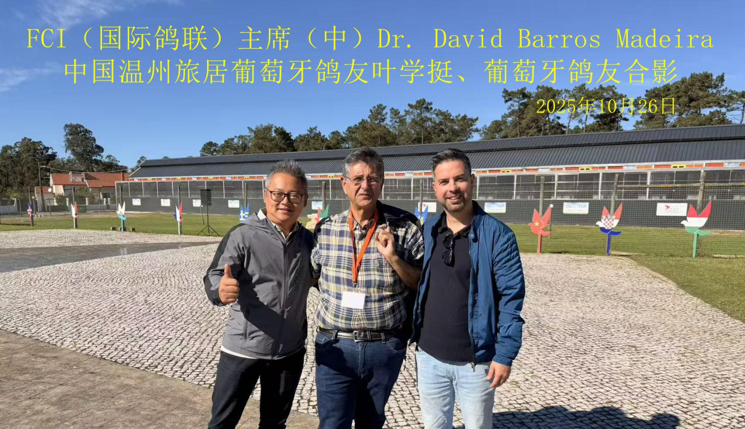 FCI(国际鸽联)主席Dr. David Barros Madeira(大卫·巴罗斯·马德拉)和葡萄牙信鸽协会主席José Luiz Jacinto(何塞·路易斯·哈辛托)与来自欧洲等众多国家的五、六百鸽友一起观看决赛。
