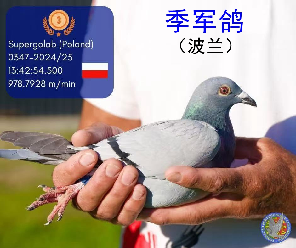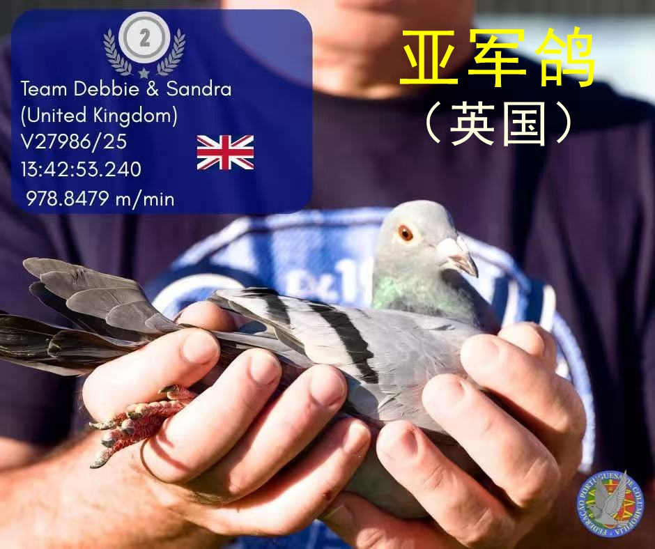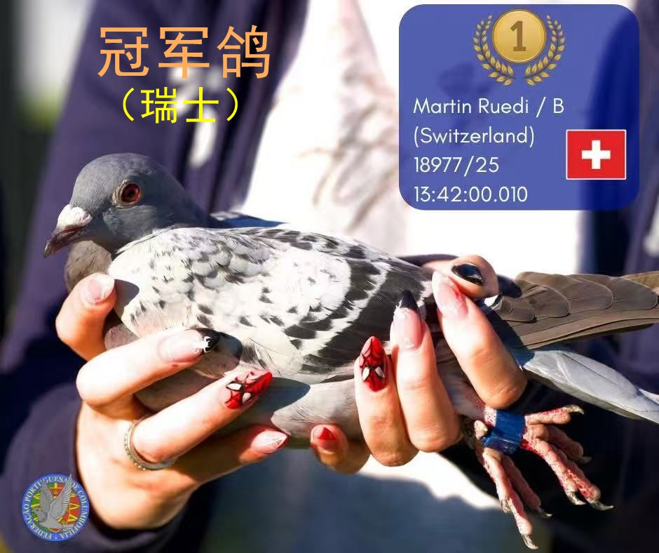 由葡萄牙信鸽协会主办的葡萄牙国家级别最高的高规格、高质量的“米拉”赛鸽公棚,2025年10月26日举行了决赛,决赛放飞地天气为3级逆风阴天,鸽子顶风飞行,当天归巢鸽127羽,瑞士“Martin Ruedi”鸽友的爱鸽单羽率先归巢,比亚军早了53秒,以分速981.1824米/分勇夺冠军,英国的Team Debbie Sandra赛鸽团队获得亚军,波兰鸽友Supergclad获得季军。旅居葡萄牙中国侨胞叶学挺中葡鸽墅的中葡赛鸽团队,分别获得16名和75名。其16名与亚军、季军都是第二梯队同时到达,归巢比冠军晚1分零8秒。