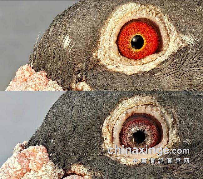 眼睛,作为赛鸽身体状况最真实的“晴雨表”。在日常饲养中细心观察就不难发现:当一羽赛鸽处于巅峰状态时,双眼通常明亮有神,面砂红润饱满,虹膜层次清晰,目光锐利,整体透出一股旺盛的生命力。