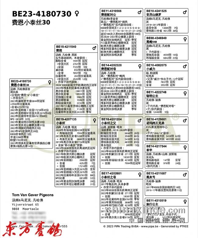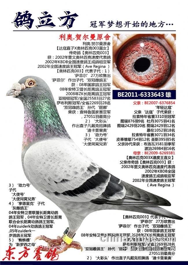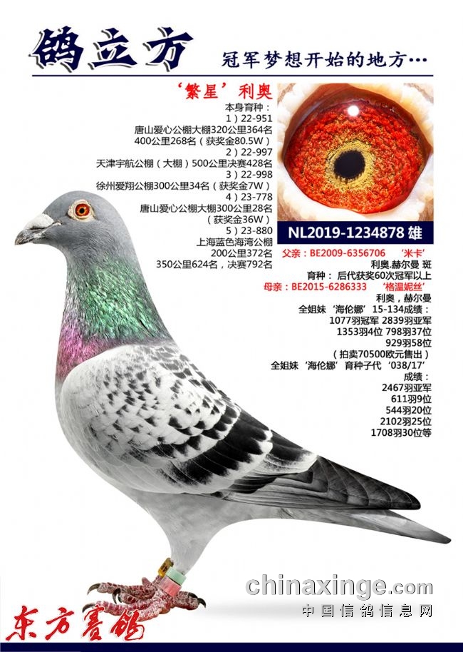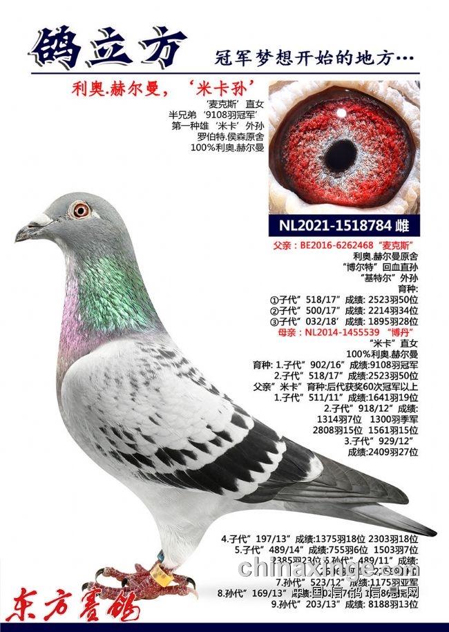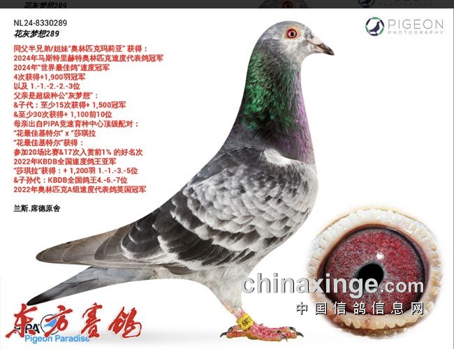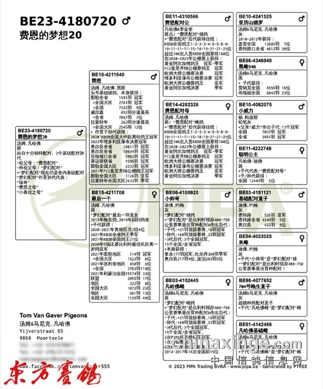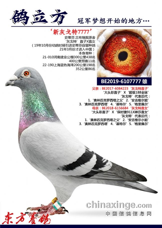 新引进种鸽费恩的梦想20血统。雄(未拍照片)BE23-4180720