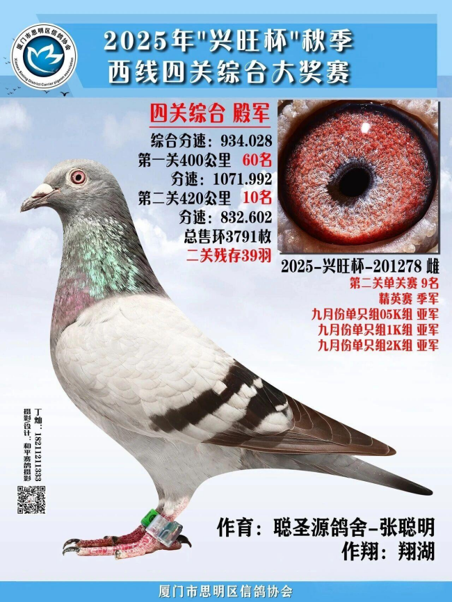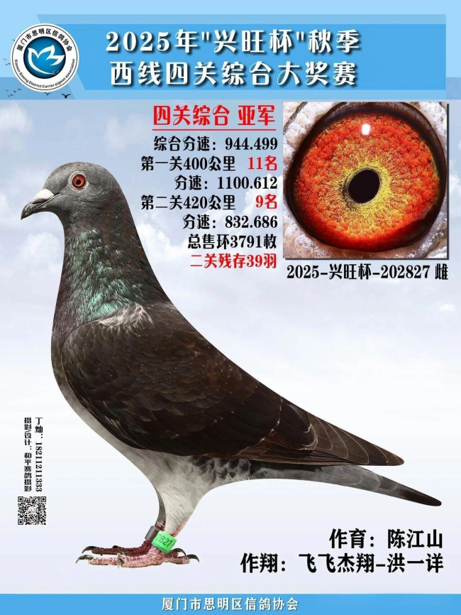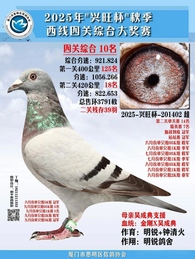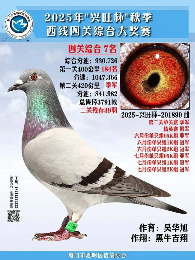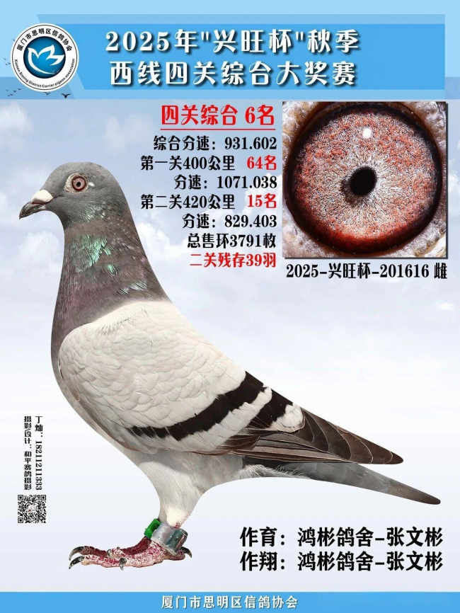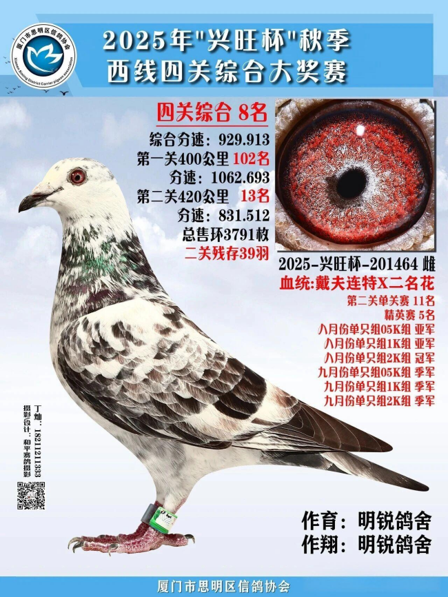 今年厦门市思明区“兴旺杯”秋季西线四关综合大奖赛,仅战至二关便提前结束比赛,赛事难度直接拉满。10月5日,兴旺杯230公里资格赛拉开秋赛序幕,上笼88舍2236羽,最后归巢92.62%,取得大捷。