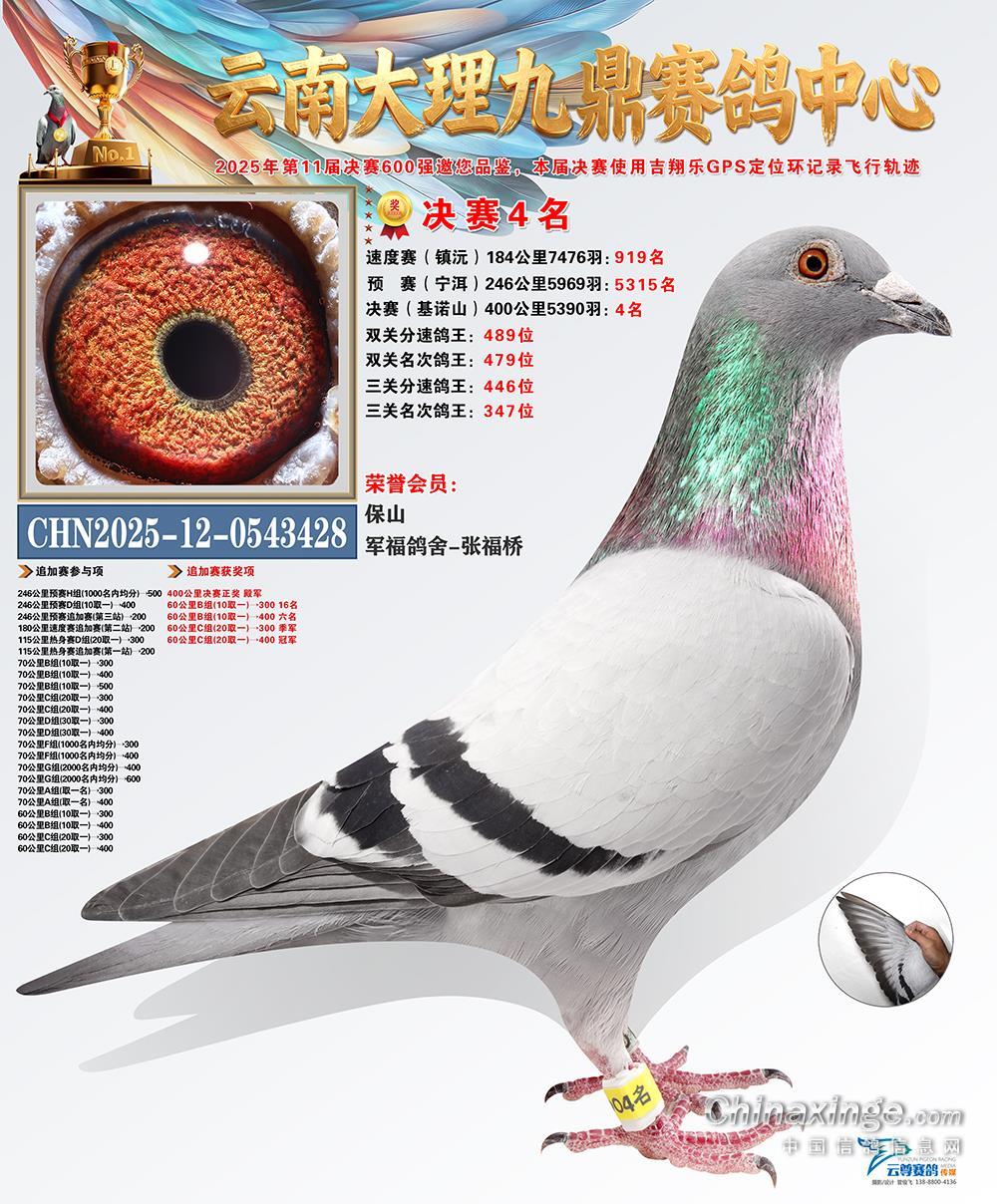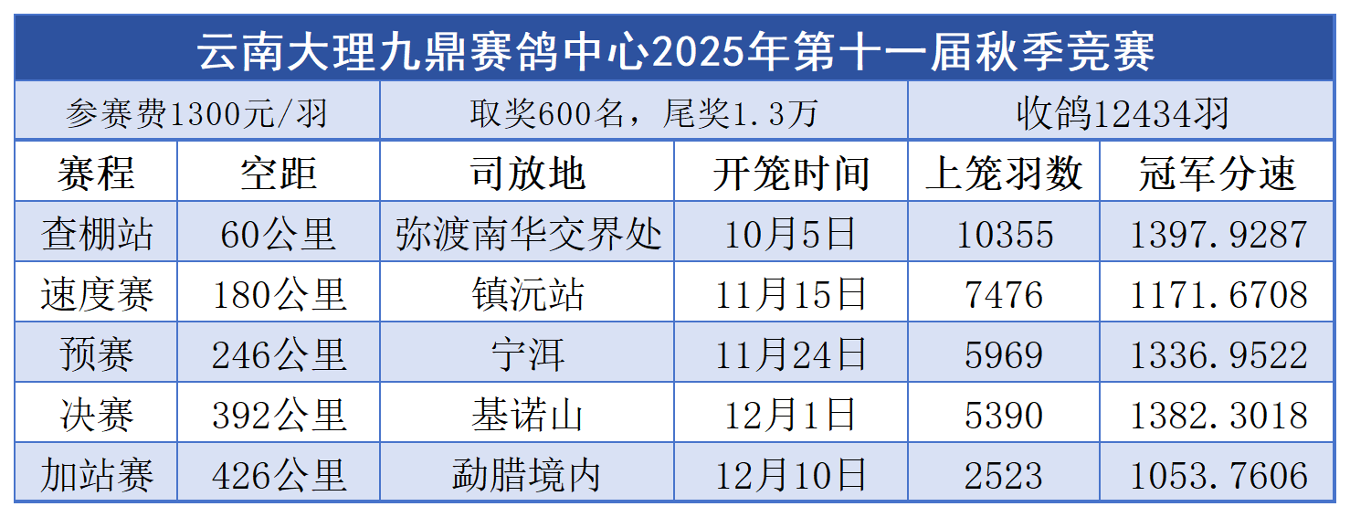 云南大理九鼎赛鸽中心2025年秋决赛201—300名以及单项3羽