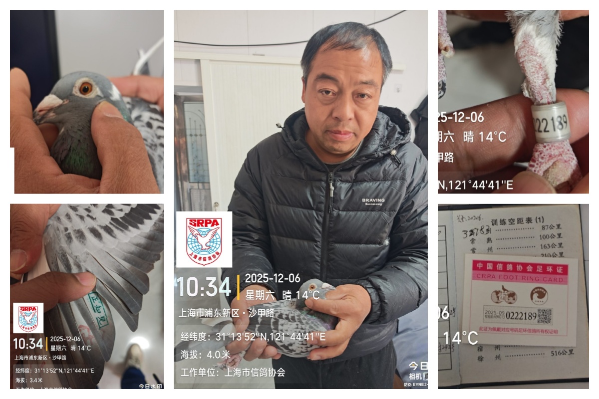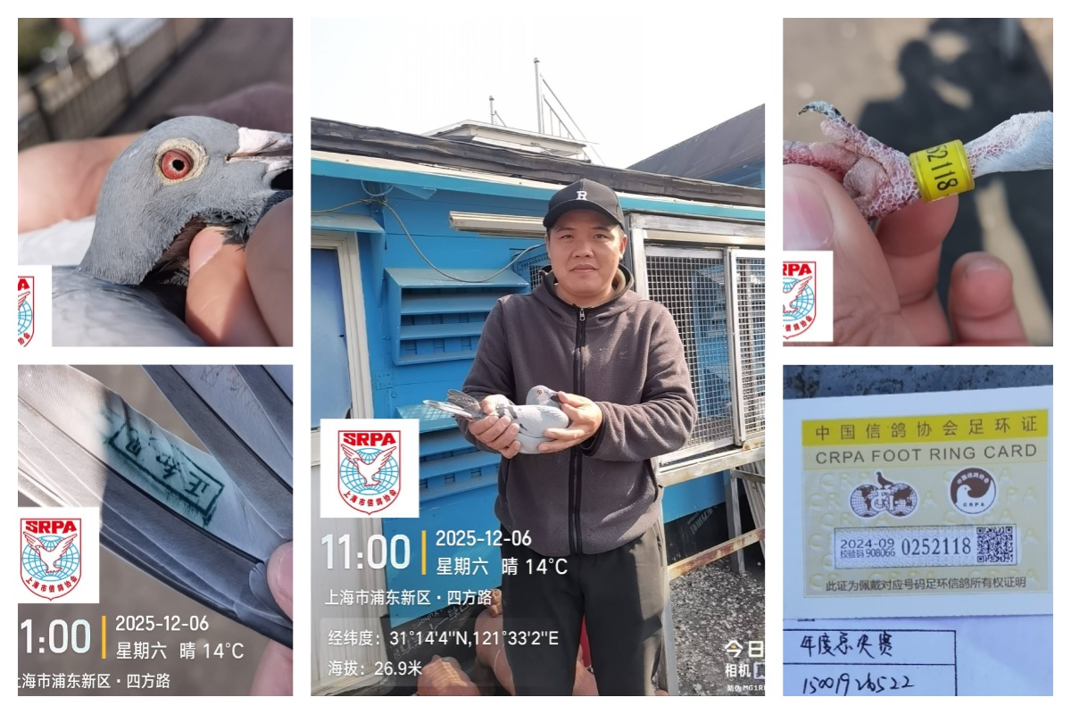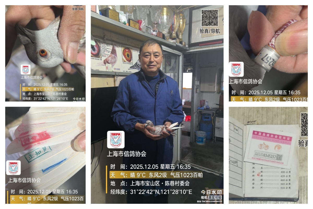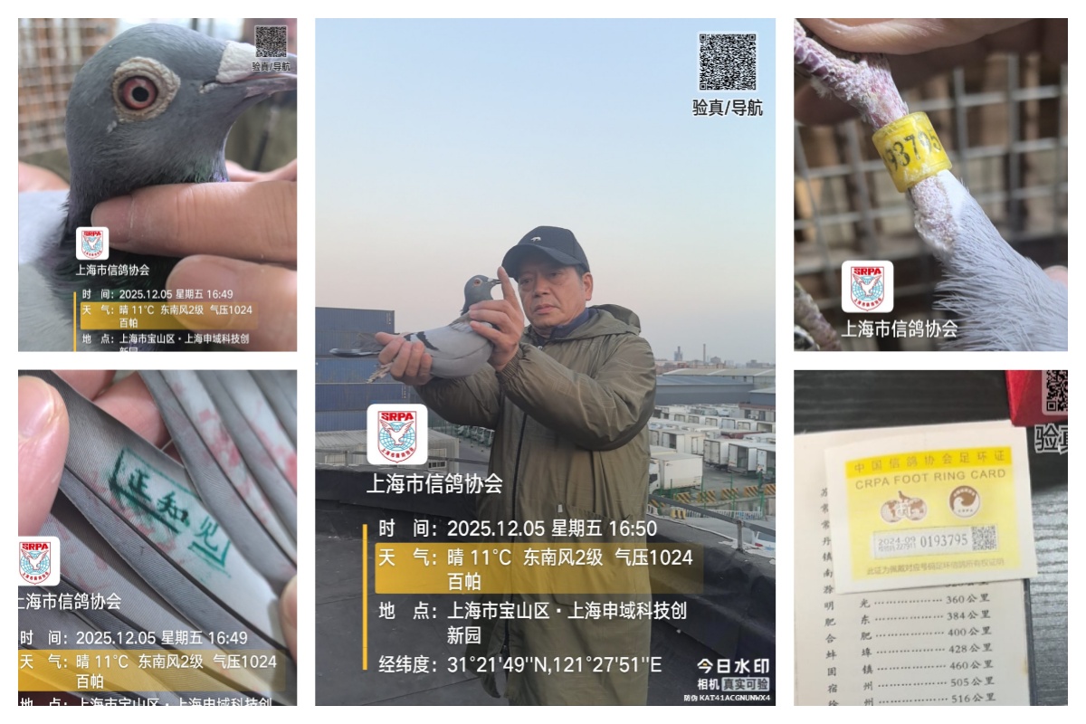 2025年上海市信鸽协会年度总决赛幼鸽特比环大奖赛,于12月5日早7:19在安徽利辛开笼。天气晴,东南风,共5016羽赛鸽竞翔,参考空距541公里。