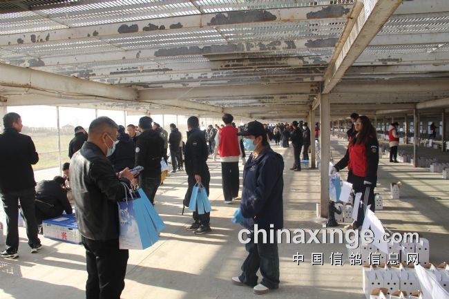 探视前鸽友不用交费,本次探视公棚给每一位探视鸽友赠送一件礼物,里面装有慧能信鸽围兜、签字笔、湿巾等礼物,午餐有陕西肉夹馍、凉皮,臊子面、饮料等,鸽友随到随吃。探视的鸽子采用一羽一盒子,一家鸽子集中在一起,扫二维码可以领取探视顺序号,一个鸽友一张票,根据票号取鸽子,现场秩序井然。