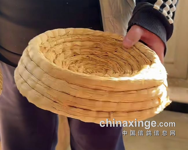 另外,不同阶段用的草盆也有讲究。比如母鸽趴蛋时用的草盆,盆口要稍微收紧,但才不易容易掉出来;但等小鸽子套上足环、开始学走路了,再换成另一种收口更宽点的草盆,因为这时候幼鸽活动量大。