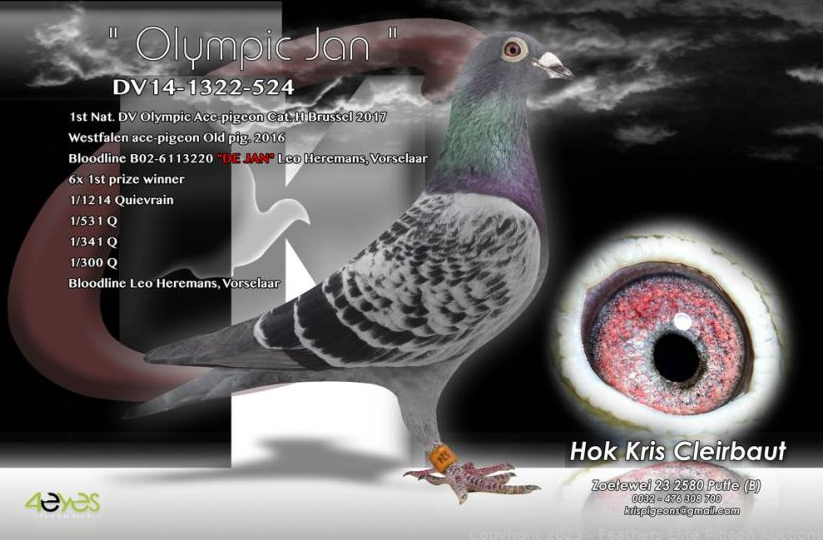 故事还要从他早期的核心血系说起,其鸽舍三大主血包括鲁迪·凡瑞斯(融合贺尔曼与范登布克血统)、史蒂芬·兰布瑞契,以及贯穿其整个育种生涯的灵魂赛鸽——“奥林匹克杨”,环号为DV01322-14-524,它本身便是一代传奇,不仅赢得布鲁塞尔奥林匹克代表资格,更为德国摘得H类奥林匹克冠军。