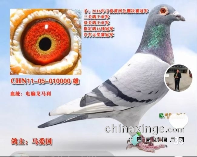 二十年前,马爱国从北京高价引进了两羽电脑戈马力高辈份种鸽,那时的电脑鸽系可以说是火遍大江南北。马爱国作为一名铁杆鸽迷,也是一名成功人士。名下有一座乌海宾源大酒店,每年都会有丰厚的收入。充足的资金来源为他日后高价引进世界名血名鸽打下了坚实的基础。2003年他亲赴北京引进了两羽电脑黄眼雄鸽做为舍中主血,与后续引进的桑杰士、凡龙、盖比、凡登布克等血系杂交,此后的成绩便一发不可收拾。