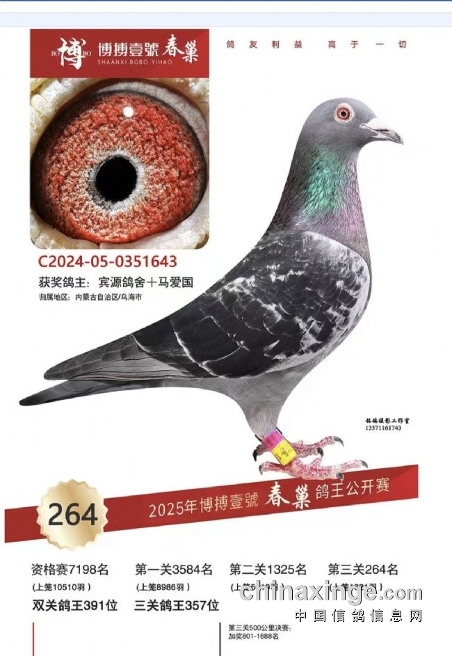 “塞外翔每年收鸽都过万羽,由于东北线非常难飞,归巢率不是很高。马爱国能每年都有高位奖鸽,真不愧是高手中的高手。”包头鸽友李贵春由衷地称赞道。