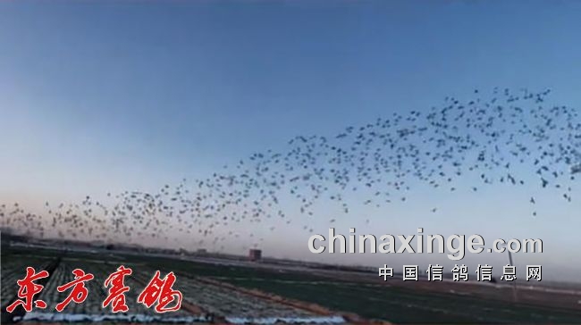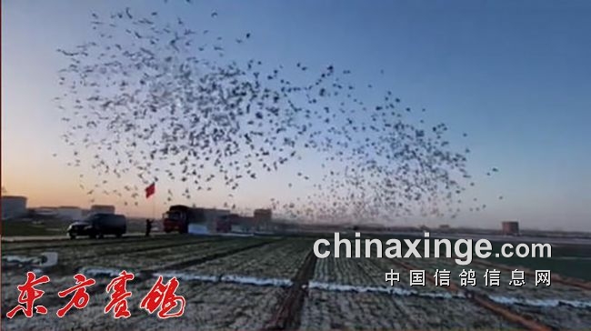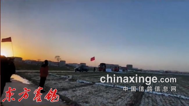 开笼:司放地杞县日出07:19,太阳恪尽职守冉冉升起。背倚霞光,公棚董事长董光文先生和司放人员一起合影留念。07:36,太阳还未完全跃出地平线,就开笼啦。大晴天嘛,早点放飞,让徽翔的勇士早点回家。两辆赛鸽车同时开笼,6193羽赛鸽连绵冲出赛鸽车,气势如虹飞上蓝天,迅速准确定位,浩浩荡荡朝着家的方向飞去,走势良好。