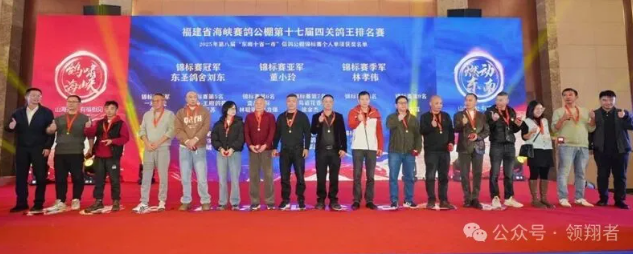为获得福建海峡第17届鸽王排名赛“加强赛”的鸽友颁发奖牌
