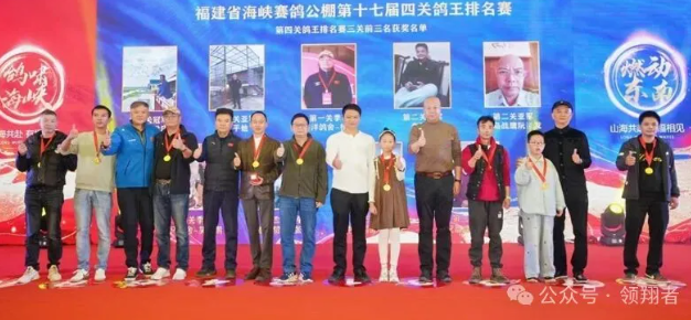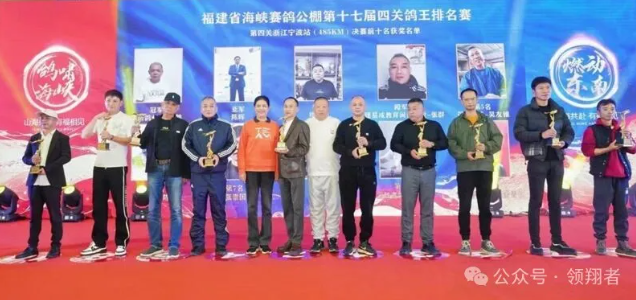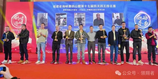在福建海峡公棚颁奖大会上,鸽友们永远是最耀眼的主角。12个奖项以隆重的仪式颁发,充分表达了对养鸽人的尊重,对赛鸽顽强归巢以命相搏的致敬。