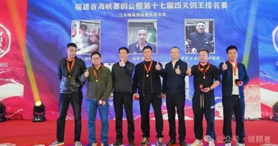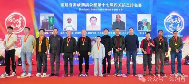 为获得福建海峡第17届鸽王排名赛“小团体”的鸽友颁发奖牌