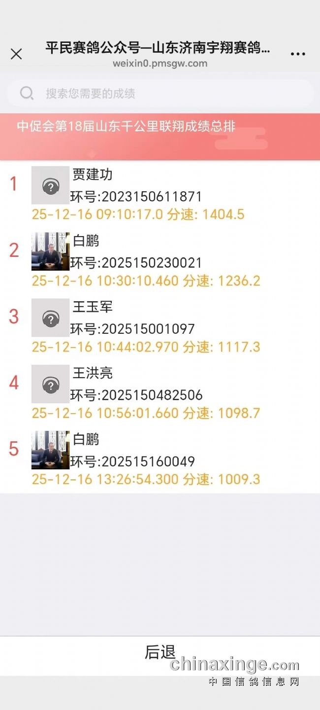 12月16日9点10分17秒,山东寿光贾建功的李种环号2023-150611871,分速1404.5米,已然获得中国远程赛促进会第18届山东省千公里联翔冠军。
