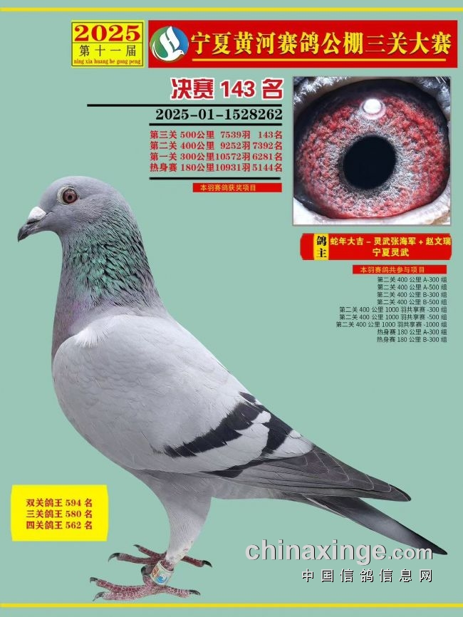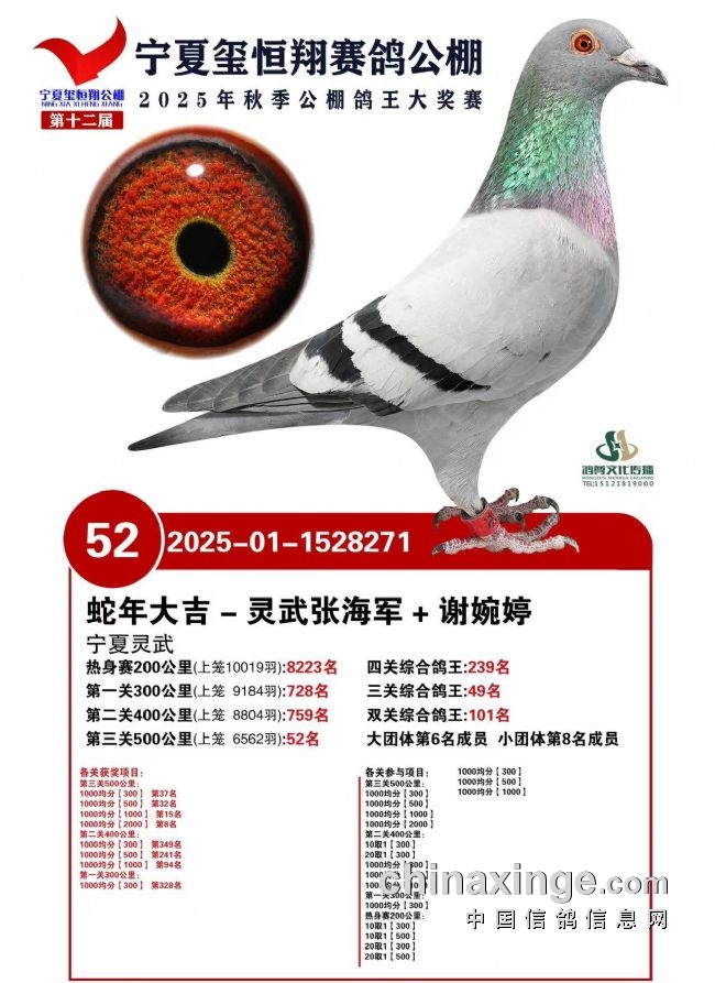 “闯关东”,这一承载着先辈开拓精神的历史词汇,如今在宁夏鸽界被赋予了全新的赛场内涵。灵武市养鸽爱好者张海军,以一羽赛鸽征战辽宁长城国际公棚,在高手云集、参赛费高达万元每羽的激烈竞逐中,凭借2025-01-1529202号灰鸽一鸣惊人,斩获预赛367名、第二关400公里44名、500公里决赛151名,更是荣膺三关鸽王赛第8名,用实力书写了宁夏鸽友闯荡外省高端赛场的传奇篇章。