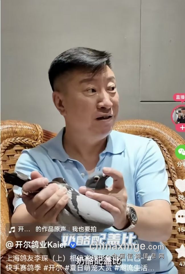 2024—09—0019707点、砂,其父是开尔杨欧瓦克血系种鸽,其母是开尔佛科克血系种鸽,都是李琛从开尔邢伟亲自拍卖中直接引进的。