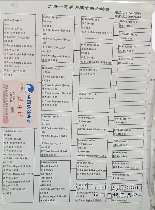 15、上海偞翔代表性种鸽:大开尔决赛46名之父(飞戈)