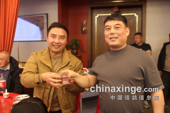 最后赛威公棚领导苏科峰、曹彤给与会者祝酒,赛威公棚风风雨雨,一路走来,今年的各项比赛取得了圆满成功,得到了信鸽协会的支持,得到了参赛鸽友的厚爱,我们倍感荣幸,深为感动,向你们表示最诚挚的祝福。
