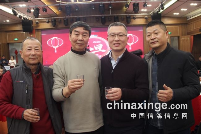 图:信鸽协会领导、公棚领导、鸽界精英、著名信鸽拍卖师李武元旦祝福