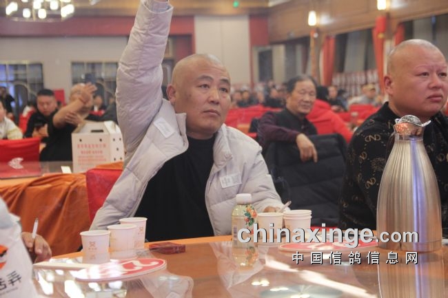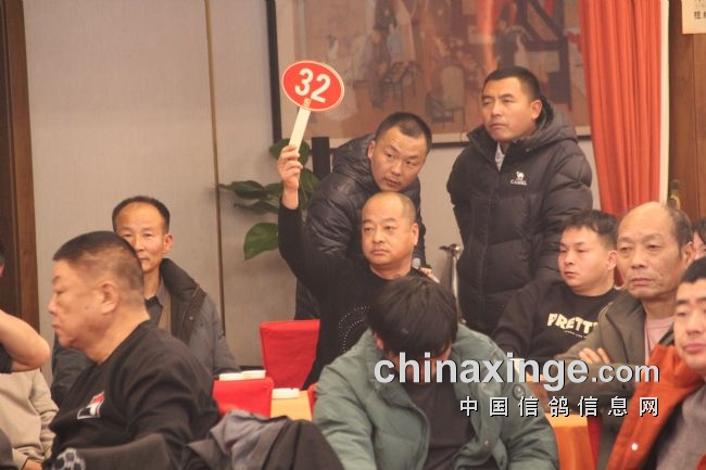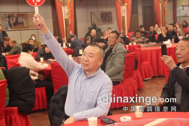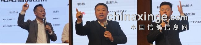 图:西安鸽友举牌以10W拍得决赛亚军鸽