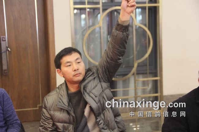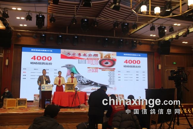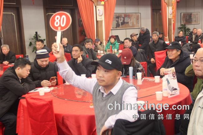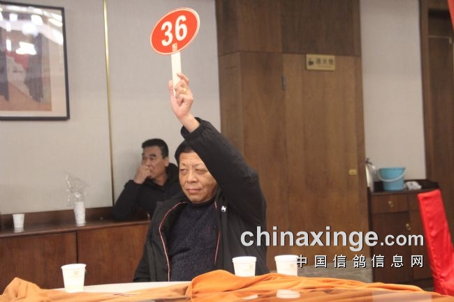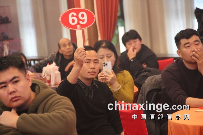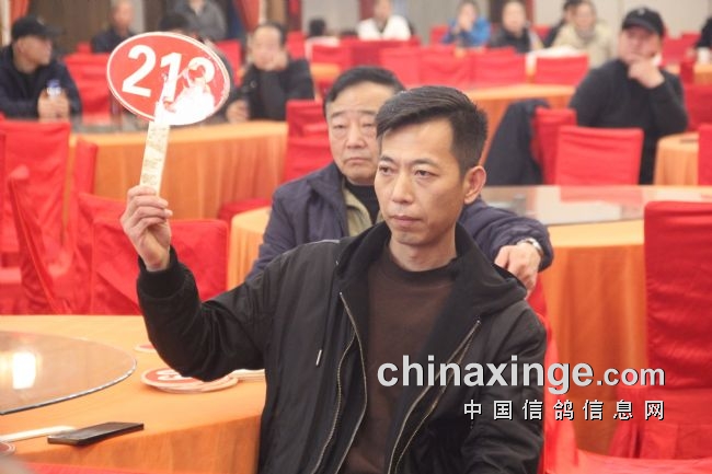 图:西安鸽友举牌者以25W拍得决赛冠军鸽