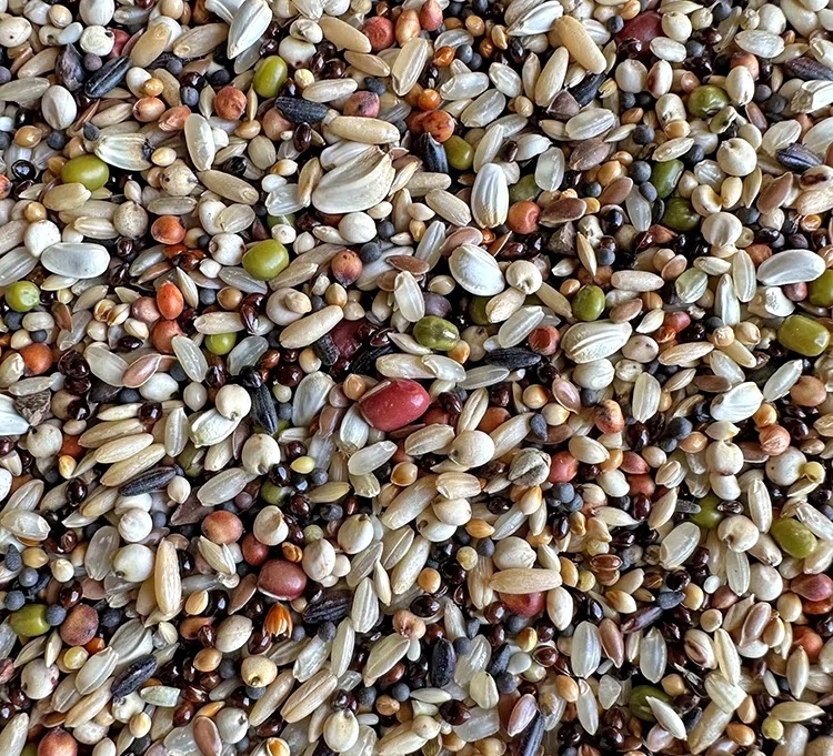 到了第三个七天,用幼鸽粮混合全豆鸽粮来喂,现在市面上也能买到现成的全豆鸽粮。除此之外,马老师还会额外加一些炒熟的黄豆和黑豆,具体比例要根据幼鸽的长势来定,循序渐进地增加,从10%逐步提升到20%、30%,最后到40%。豆类富含营养,能帮助幼鸽快速长肉长骨架,为后续发育打下好基础。
