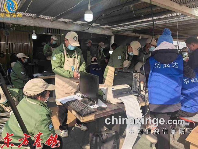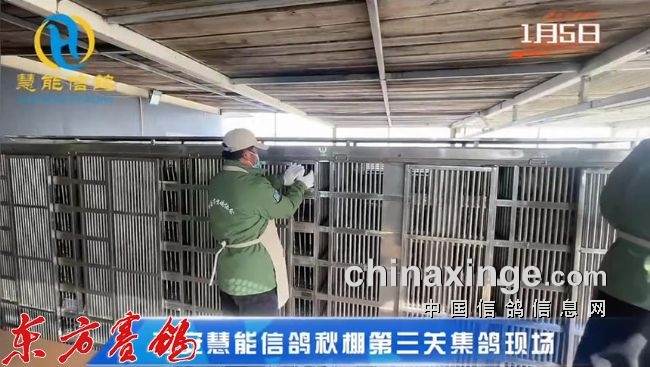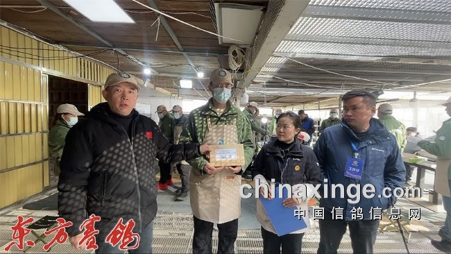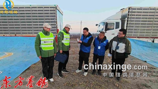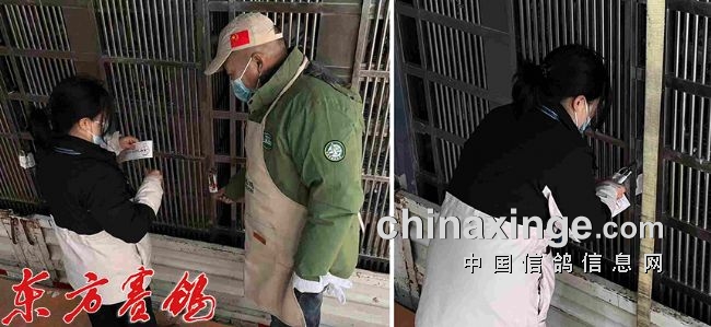集鸽结束后裁判员查棚防止漏赛。
