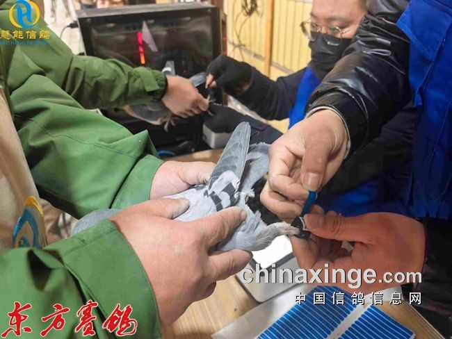 集鸽:1月5日集鸽,由渭南市信鸽协会委派24名裁判担纲集鸽工作。集鸽于12:03:32至18:23:27,对参赛鸽经逐羽扫描核对查验,佩戴GPS定位环,加盖暗记章,实际上笼6062羽。其中,更改羽色1羽,更换电子环3羽。另伤残鸽5羽。