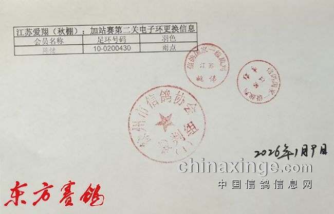 2026年1月10日早上07:10,江苏爱翔赛鸽中心第十六届秋季竞赛双关鸽王加站赛第二关550公里赛在浙江绍兴开笼,实际空距551公里。2017羽爱翔将士力争上游地出征。其中1202羽报名参赛鸽全力以赴争夺本关前十个奖席,并力争跻身117个双关鸽王荣誉行列。