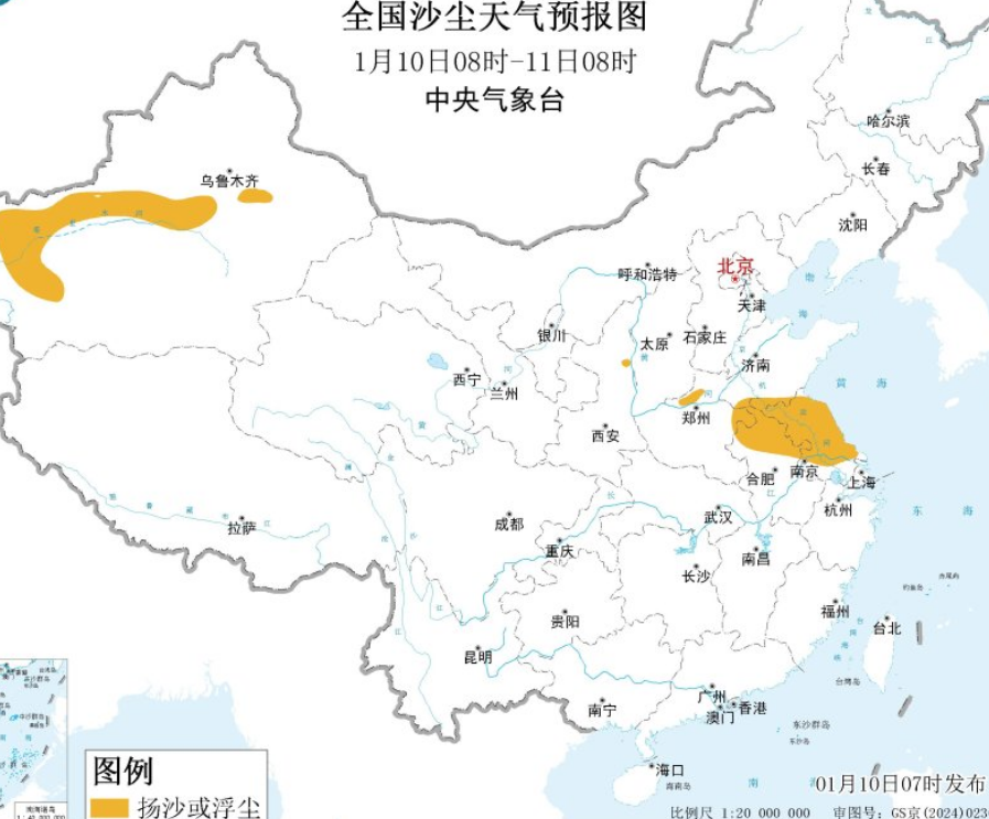 气象:赛线除起点绍兴与末端徐州为晴天,其余为多云,俗称小晴天。赛线气温均在冰点之上,最高气温有7—8度。可晴雨只是赛鸽能不能飞的准则,好不好飞得看综合气象条件。一综合分析,麻烦就来了:一是赛线全线以正逆风西北风为主流风向,风力还比较大。从湖州开始,西北风或西风有3级;后半程,从南京开始直至公棚所在地风力达4-5级及以上。二是赛线从南京开始进入扬沙浮尘区。详见中央气象台沙尘预报图。