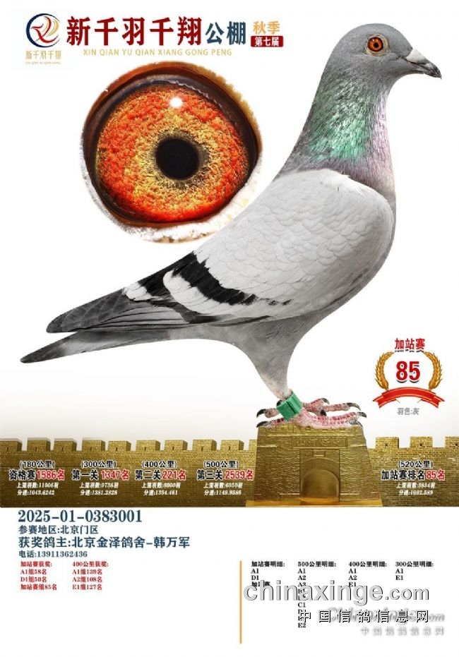 有年我买了只带大原环的鸽子,回来好几天都不吃不喝。后来发现地网孔太大,就想换了小一点网。结果你猜怎么着?这鸽子干脆不下来了。整天蹲在栖架上,轰都轰不动,硬是折腾了四五天。但神奇的是,这只脾气倔得要命的鸽子,后来直接出了豪威公棚的鸽王冠军。所以啊,有时候脾气大反而是好事。